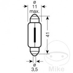 Aplicaciones: trasera, frenos y luces antiniebla, matrícula y luces de posición laterales, iluminación interior y luz de lectura TENSIÓN: 12V TIPO: BOMBILLA FESTÓN BASE (ZÓCALO): SV8.5-8 POTENCIA: 5 VATIO TIPO DE LUZ: ESTÁNDAR CON HILO: 1 HILO LONGLIFE: NO VERSIÓN REFORZADA (HEAVY DUTY): NO HALÓGENA: SÍ LONGITUD: 41.00 MM Diámetro: 11 mm NORMA DE ENSAYO: ECE E1 R37 ENVASADO BLISTER: NO
