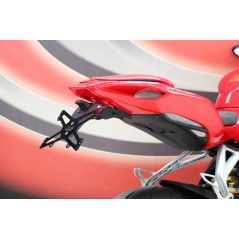 Nuevo soporte de matrícula Evotech extremadamente ligero y de revolucionario diseño. Anodizado negro, aluminio barnizado y porta placa específico para cada país. Sólido enganche realizado en tecnopolímero con sistema antituning para reducir las contínuas vibraciones de la carretera. Nuestro kit incluye soportes para el montaje de intermitentes de la industria auxiliar de brazo de 10mm de diámetro. Cada kit incluye pasos de rueda y/o enganches específicos para cada moto.