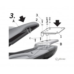 Para el montaje del top case en la moto es necesario añadir a esta fijación, la parrilla incluida dentro de la maleta SHAD (a excepción de TR48/TR37).
